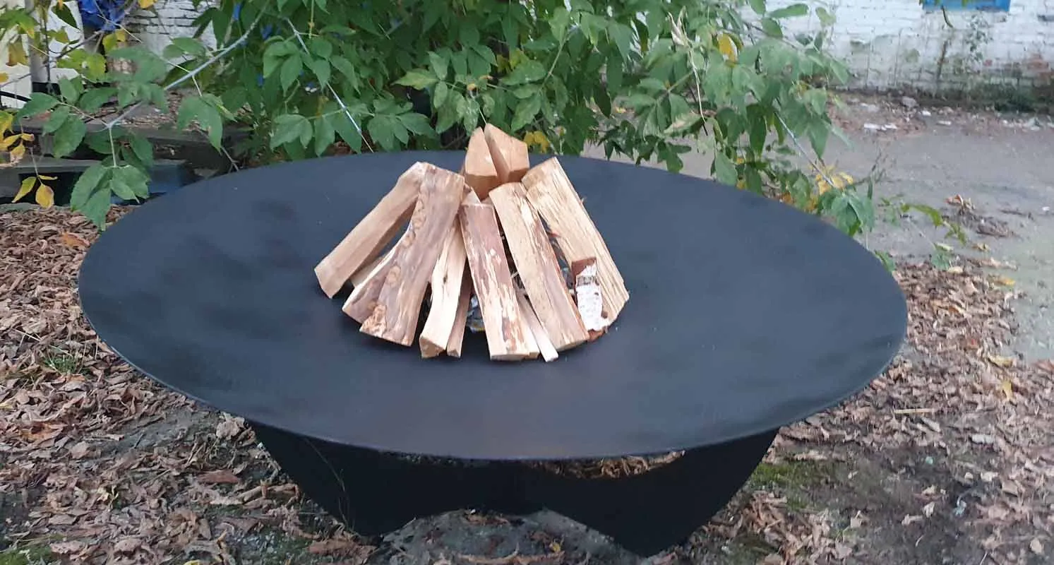 Диаметр костровой чаши 92 сантиметра, глубина чаши 10 сантиметров, толщина метала 6 миллиметров. Материал изготовления - конструкционная сталь марки Ст3.